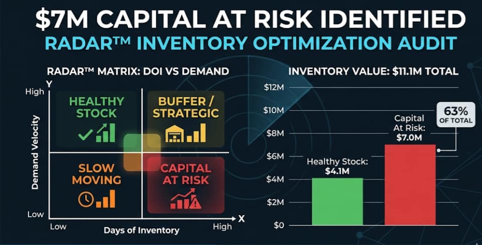 Los consultores "sólo de cubierta" le dirán que necesita una actualización multimillonaria de ERP para arreglar su inventario. En UPKAIZEN, sabemos que la verdad es más simple y más práctica. Su efectivo está sentado en sus pasillos porque sus tiempos de preparación son demasiado largos y sus tamaños de lote son demasiado grandes.